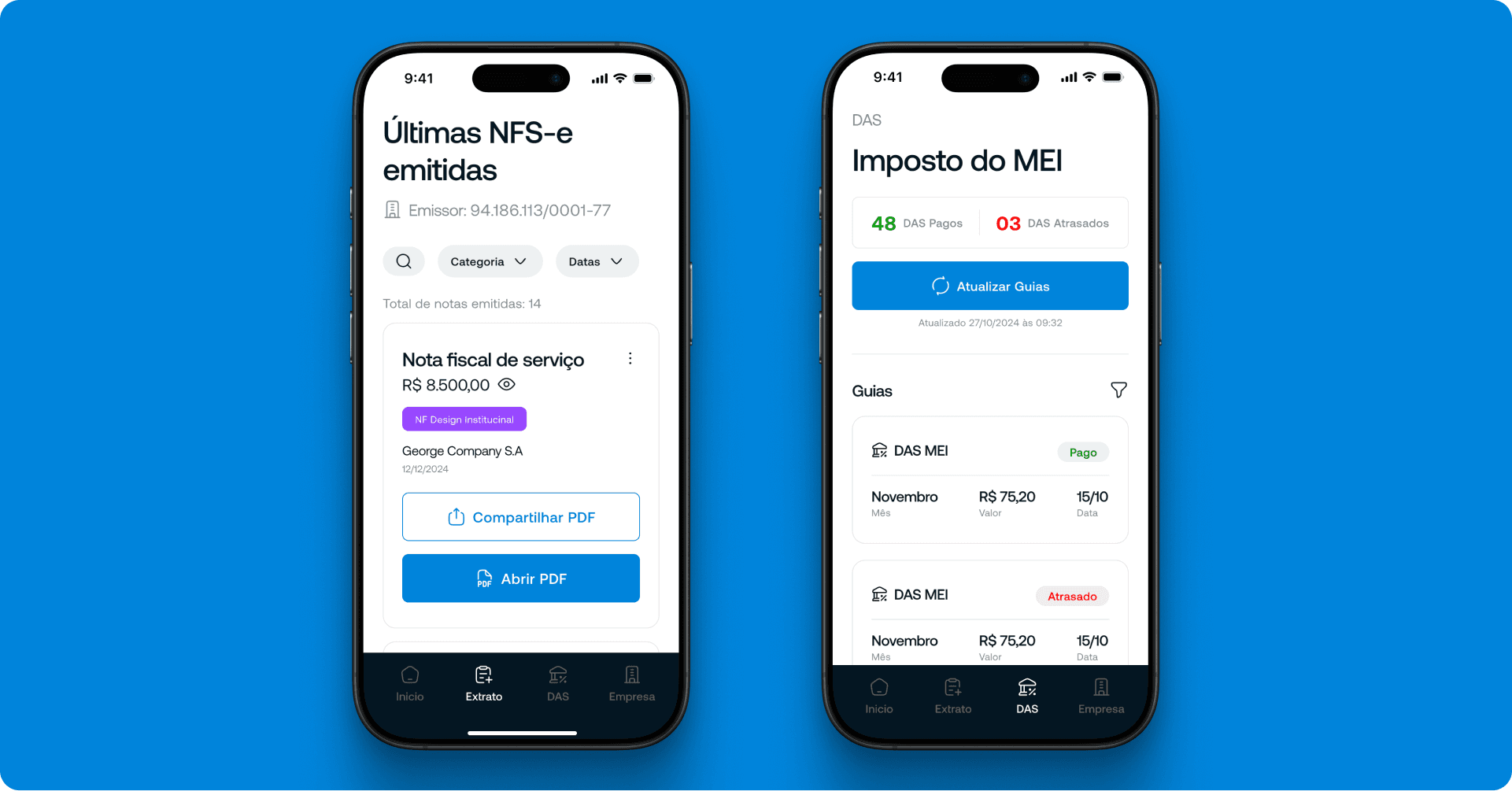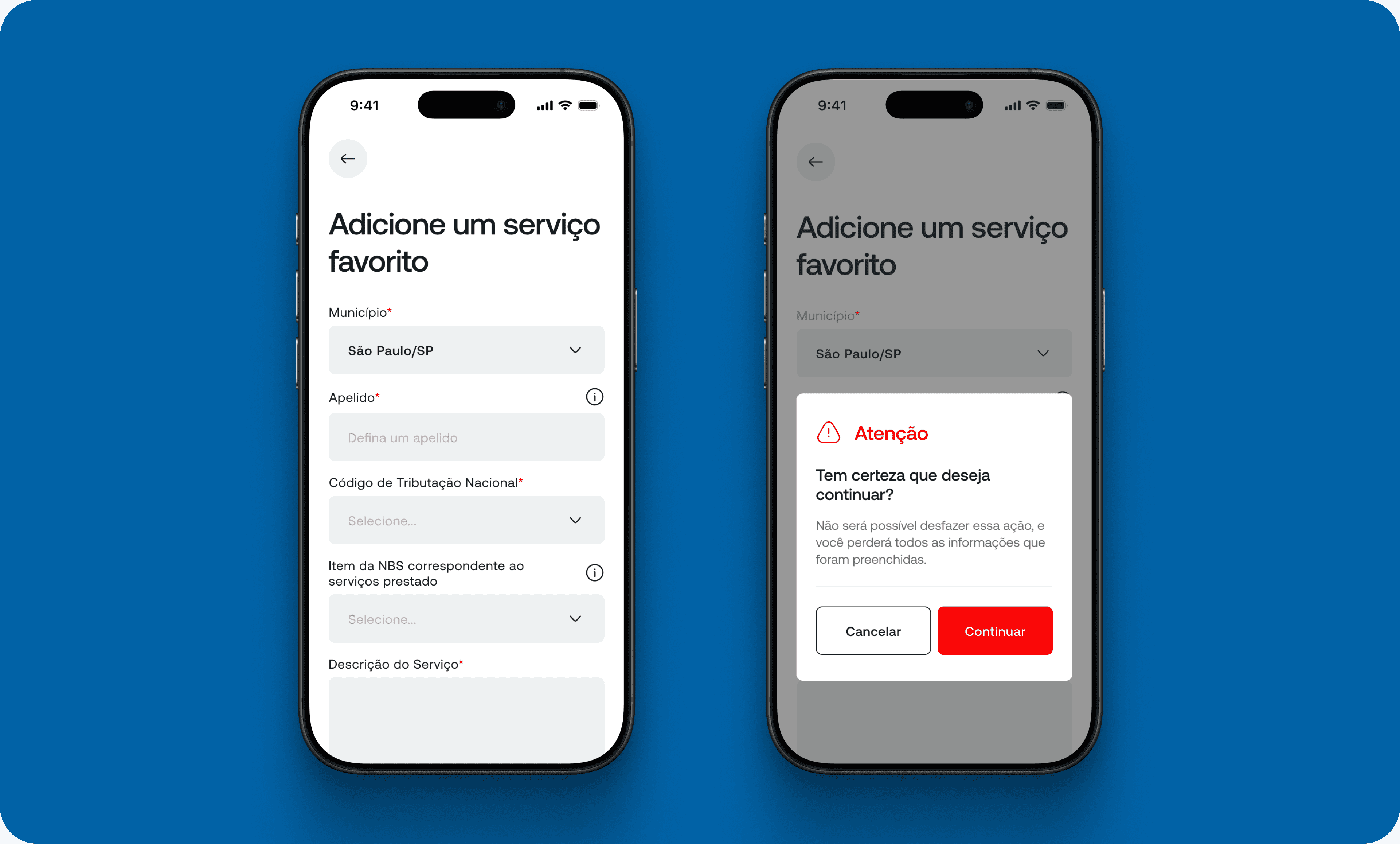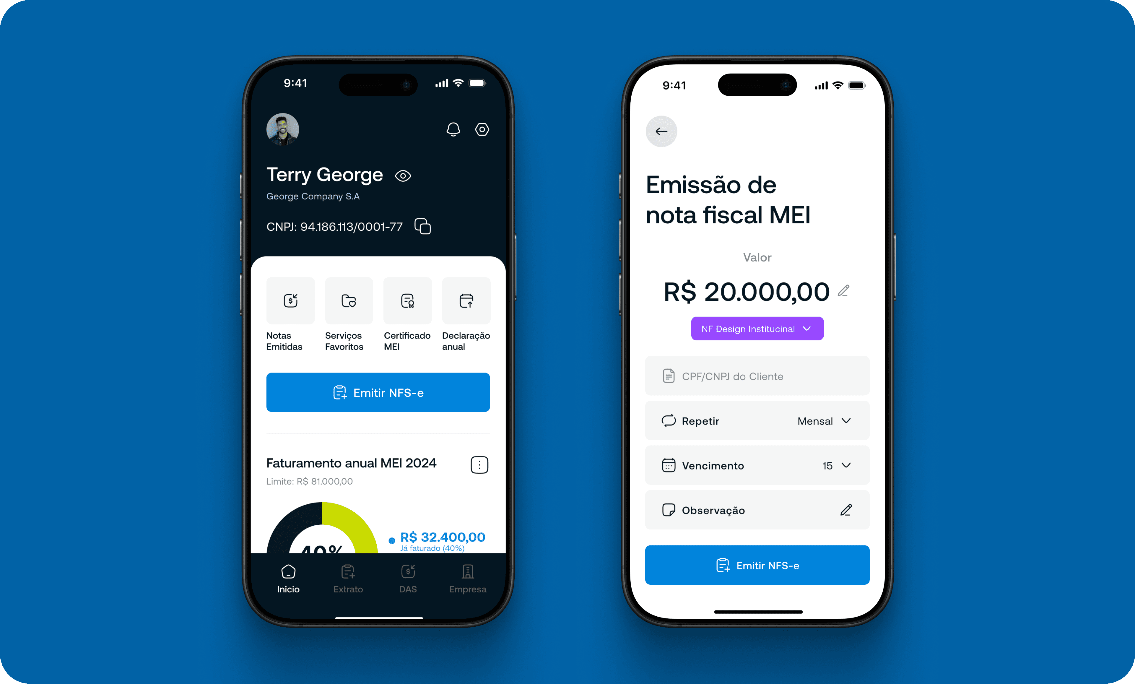 Redesenhei o app NFS‑e com uma interface moderna, navegação mais intuitiva e acessível, priorizando clareza no fluxo de emissão de nota. Ajustes de cores, tipografia e estrutura de conteúdo organizam melhor as informações e tornam o uso mais fluido para diferentes perfis de usuário.