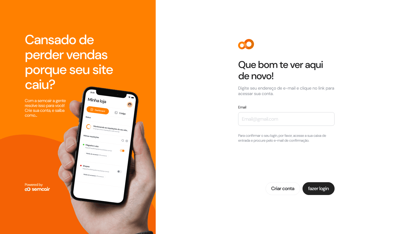 Sem Cair é uma plataforma que usa filas de espera inteligentes para prevenir quedas em sites de e-commerce e eventos. Quando o site enfrenta um pico de acessos, Sem Cair entra em ação e redireciona os usuários, garantindo estabilidade.